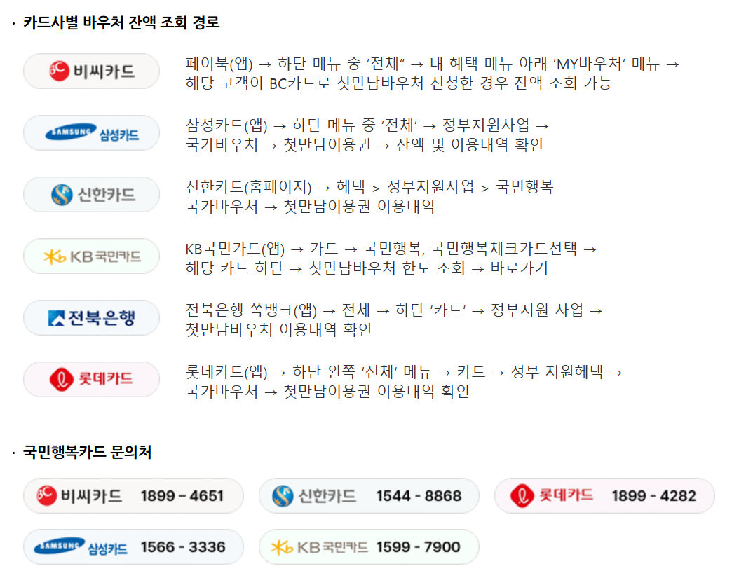 - 카드사별 첫만남 이용권 잔액 조회 경로